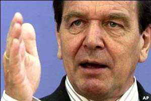Versucht erst seit dem drohenden Irakkrieg, eine eigene Richtung vorzugeben und erklärte sich vorher "uneingeschränkt solidarisch" mit den USA. Durch die von Ihm initiierte Beteiligung deutscher Soldaten im "Kampf gegen den Terror" trägt er Mitschuld am Tod von unbeteiligten Zivilisten in Afghanistan. Genauso wie Hr. Blair ebnet er unter dem Deckmantel einer sozialdemoktratischen Partei den Weg für den Turbokapitalismus. Seinen Arbeitsminister, einen Ex-Gewerkschaftler, brachte er sogar dazu, ein Tabu zu brechen, an das sicht nicht einmal konservative Regierungen vorher herangewagt hatten: Die Aufkündigung der Solidargemeinschaft. Seit 2002 muß jeder abhängig beschäftigte Bundesbürger Jahr für Jahr mehr für seinen Privatrentenanteil sorgen, die Arbeitgeber bleiben so von Kostenerhöhungen verschont. Daß diese Maßnahme trotzdem keine Arbeitsplätze schafft hat man sehr schnell gesehen. In der Diktatur des Kapitals haben demokratische Institutionen eben keine Lobby. So verhält es sich auch bei der Ökosteuer, die nicht etwa zur Behebung von durch Gebrauch fossiler Brennstoffe verursachter Naturschäden dient, sondern zur Senkung der Lohnnebenkosten, also als Subvention der Arbeitgeber. Nach seinen Worten wollte er am Ende seiner Amtszeit am Stand der Arbeitslosen (Ziel: 3.000.000) gemessen werden. Da gibts nur eins: setzen, sechs! Leider stand zur Bundestagswahl 2002 nur die Horrortruppe von Stoiber als Alternative mit Siegchancen zur Wahl, weshalb man schon froh sein muß, daß er es nochmal geschafft hat. Resümee: An ihm und seinen Gegenkandidaten erkennt man, wie tief Deutschland schon gesunken ist! |