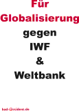 Da der Verfasser dieser Seite die Reaktion (nicht nur) der USA auf den Anschlag vom 11.9.01 mißbilligt, wird er wohl in Zukunft als Terrorist eingestuft. Auf dieser Seite einige Erklärungen, öffentlich auf T-shirts zu tragen, deren Inhalt nicht die uneingeschränkte Solidarität ist... |